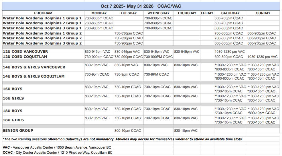 12U COED | 8:30- 10:00 pm | 8:30- 10:00 pm | 8:30- 10:00 pm | 8:30- 10:00 pm | 10:30-12:30 pm | ||